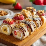 You can serve banana sushi as a fun snack for kids, a quick breakfast, or even as a dessert. It’s great for parties or lunchboxes too. Just place the sliced pieces on a plate or in a container for easy sharing.